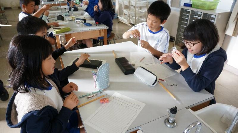 豊橋筆作り体験では,糸を使う「仕上げ」など,いくつかの工程を行いました。
