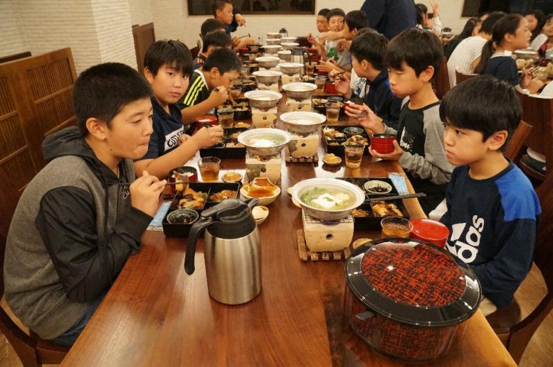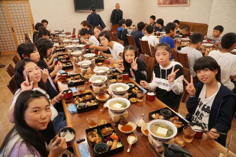 終わった後には体育館で、たてわり班ごとにおいしいお弁当を食べました。
