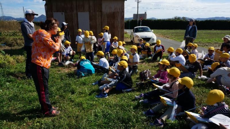 どんぐりや椎の実,松ぼっくりなどを上手に見つけ,袋いっぱいにすることができました。なかなか見つけられない子と一緒に探すなど,思いやりあふれる姿も見られました。子どもたちは,あさがおのリースの飾りとなるものを拾い,どんなリースを作ろうかわくわくしている気持ちでいっぱいでした。