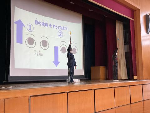 姿勢改善体操を全校で行った後、多くの児童が積極的に感想を発表することができました。保健委員会のみなさん、お疲れさまでした。大変立派でした。