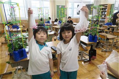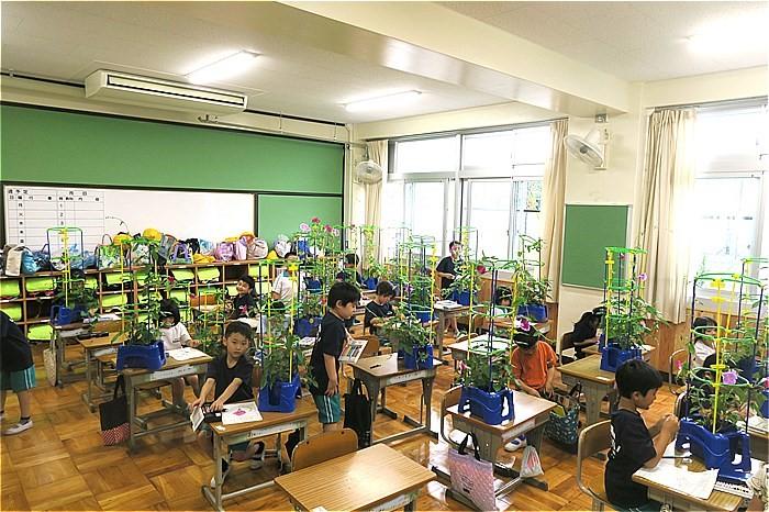 6月24日(月)から、1・3・5年生が新しい教室での生活を始めました。明るく、涼しく快適に過ごせています。1年生は、アサガオの花をつかった「色水」づくりに夢中になっています