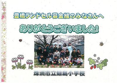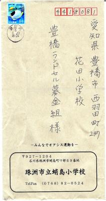 珠洲市立蛸島小学校からお礼の手紙(豊橋ランドセル募金組)
