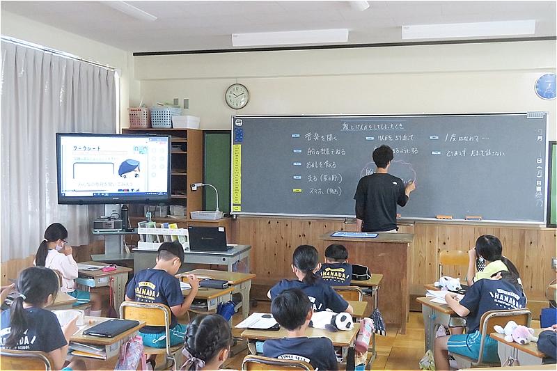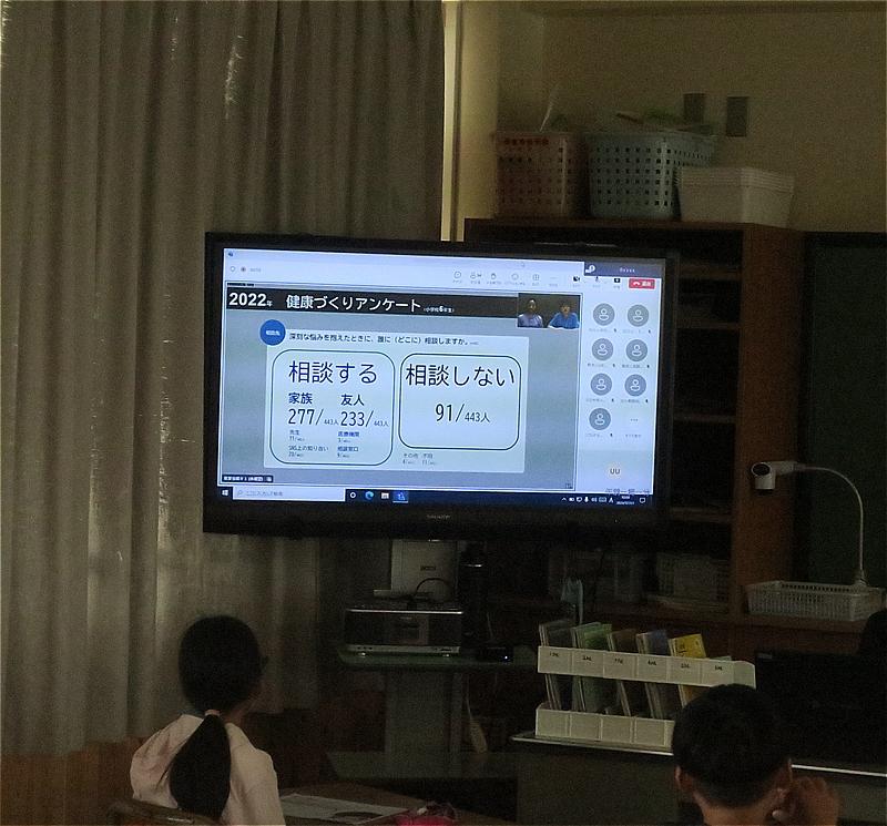 7月1日(月)市内5年生を対象に、豊橋市と豊橋市教育委員会による「SOSの出し方」に関するオンラインスタディが行われました。「不安や悩みを抱えたとき、どうするとよいかを考えていきます」という市の保健師さんの投げかけで講義が始まりました。「何か困ったときに相談することは恥ずかしいことではなく、大切なこと」、「様々な相談先や相談できる人がいること」などを教えてもらいました。学習課題に対して自分ならどうするかをワークシートに記入し、教室の友達と意見交流をしたり、他の小学校の5年生の意見を聴いたりしました。学んだことを心にとめて、自分や友達の不安や悩みは、家族・教師・友達・親戚、電話相談などに伝え、決して一人で抱え込まないようにしてください。