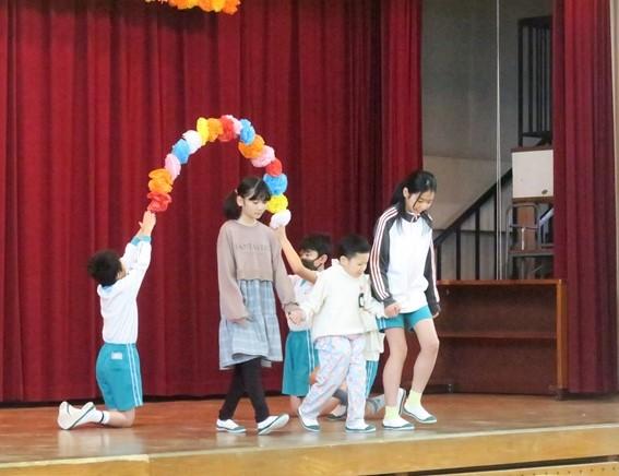 すべての出し物が終わった後に、1年生がお礼の言葉を話してくれました。とても上手にお話できました。最後は、ペアフレンドの6年生のお兄さん・お姉さんと退場です。入場のときよりも、仲よくなって退場しました。