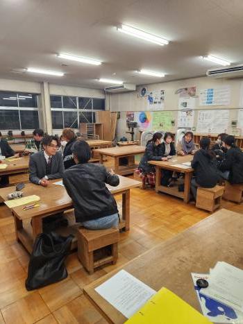 金工室で,18:30から役員会を行いました。この後のPTA委員会での提案内容の確認をしました。