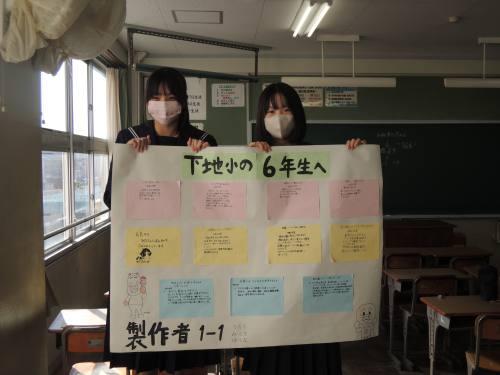 小学校6年生が安心して中学校に入学することができるように,1年生がピアサポート活動を行いました。6年生からの中学校生活についての質問に対して,1年生が答えました。その答えを教室に掲示してもらえるように,掲示物を作成しました。