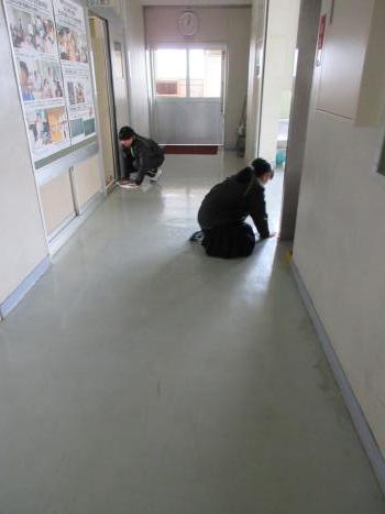 21日(水)~23日(金)は,3年生が私立高校等の一般入試のため3時間で下校しました。そのため3年生は掃除ができなかったので,1,2年生ボランティアが3年生の代わりに掃除をしました。