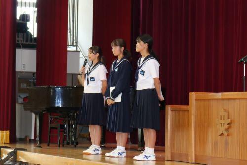 今月の全校集会では,ボランティア委員会が活動報告を行いました。