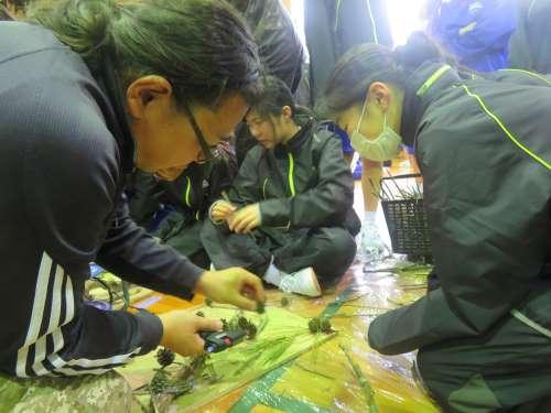 地域のかたが刈った雑草を袋につめる作業をしました。
