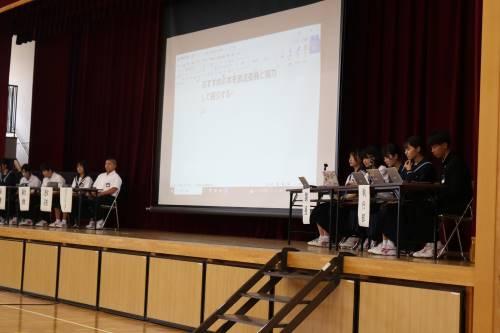 今回の議題は「#北中自慢発見部 ~北部中の自慢をみんなでつくろう~」。最初に生徒会長から「北部中らしさを見つけていこう」という話がありました。