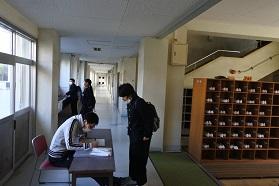 教室で、真剣にテストを受ける生徒たち。エアコンの効果も感じながら、しっかり問題を読み、解答用紙上でペンを走らせていました。