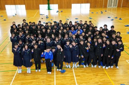 今日は,1組団(1-1,2-1,3-1)が体育館で合唱の聴き合いをしました。