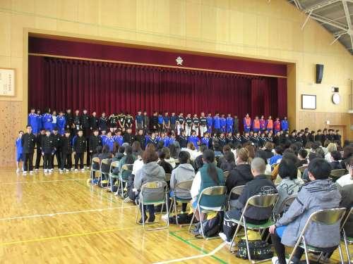 土曜日から始まる総体に向けて,選手激励会を行いました。
