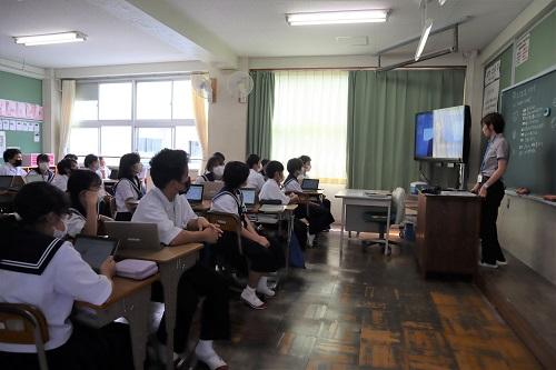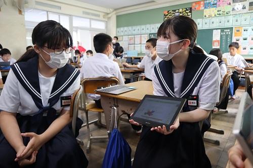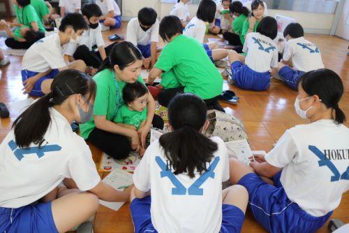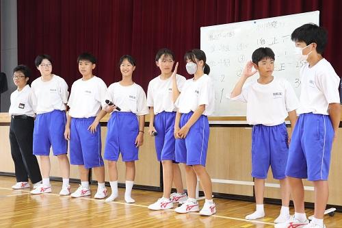 音楽部が歓迎の太鼓を演奏したり,生徒会役員が北部中の生活について紹介しました。音楽部,生徒会役員の熱演で,素敵な時間になりました。