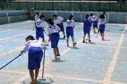 明日から令和6年度が始まります。今日は新2・3年生が入学式・始業式の準備をしました。新入生を迎えるためにすみずみまで掃除をしたり,体育館や教室の準備をしました。