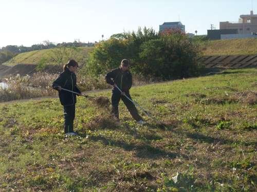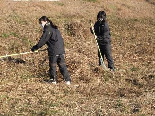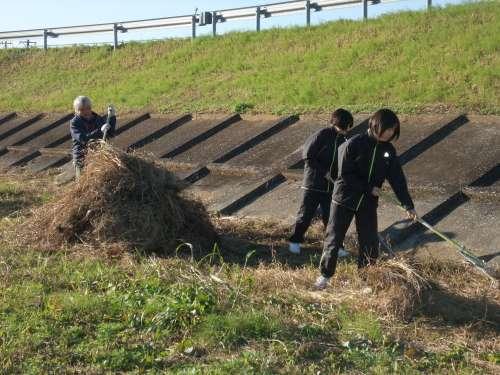 前回から1か月がたち,雑草がかなり伸びていました。それを地域のかたたちが刈り,中学生が集めてごみ袋に入れました。