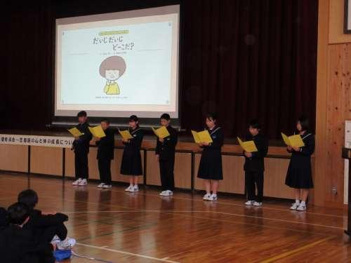 第1部は各委員会からの前期の常時活動やキャンペーン活動の提案を,第2部学級目標発表会を行いました。