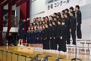 本校体育館にて,合唱コンクールを行いました。どのクラスも,これまでの練習の成果を発揮し,とてもすばらしい歌声を披露することができました。体育館中にきれいなハーモニーが響きました。