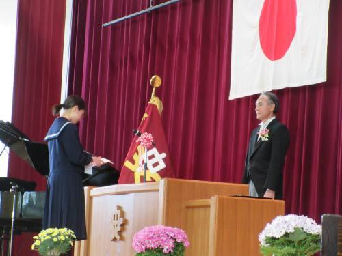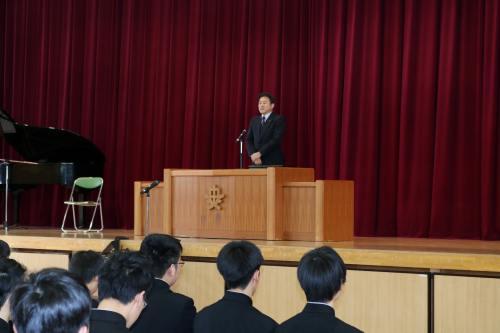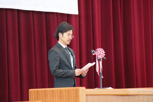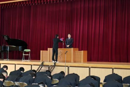 役員代表のかたからは「社会に出て活躍する中で,北中の3年間で学んだことを発揮してください。北中健児らしく『いざや いざ』でとびたってほしいです。」というお話がありました。