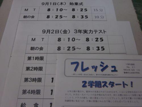長かった夏休みもあと一週間です。学校内では2学期の気配が感じられます。学年通信の準備や校内の草刈りや庭木の剪定など生徒を迎える準備が見られました。