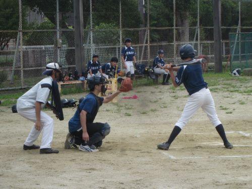 そんな中、本日野球部の引退試合が行われていました。3年・2年チームVS1年・OB・先生チームでした。OBの先輩は高校野球球児で、3年生の引退試合のために集まってくれたようです。途中、1点差の好試合でしたが、相手のミスをさそった3年・2年チームが点を重ね、10対5で勝利しました。