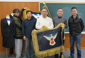 写真は、40年間使用された校旗と、理事会にご参加いただいた役員の皆様です。