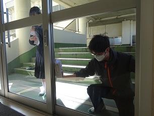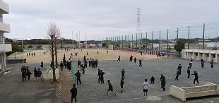3年生が、卒業を前に感謝の気持ちを込めて、学校の窓やベランダの掃除、テニスコートやグランド周りの草取り、校舎周りの側溝掃除や落ち葉拾いなどの奉仕作業に取り組みました。