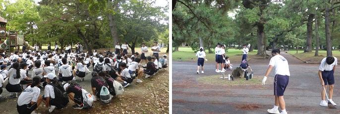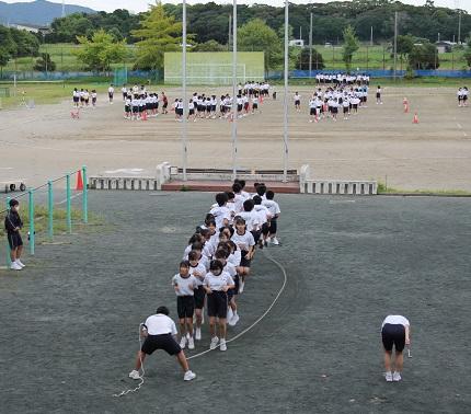 下の写真は、寒い中、部活動に励む生徒たちです。