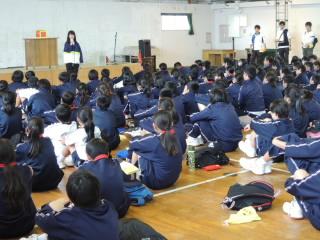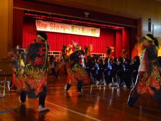 来年度入学する206名の6年生の皆さんを迎えて、新入生説明会を開催しました。寒いなかを保護者の皆様方にもお越しいただきありがとうございました。写真は学校生活の紹介と、本郷ロックソーラン隊の演舞の様子です。