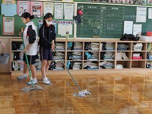 2月20日、3年教室のワックスがけをしました。