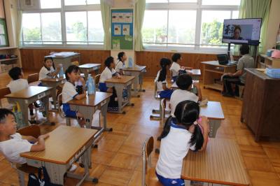 豊橋市教育委員会のかたがたによる、学校訪問が本日行われました。