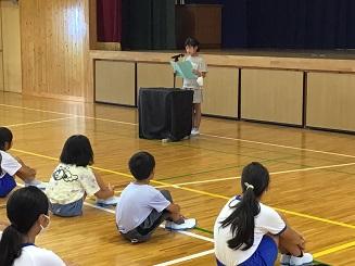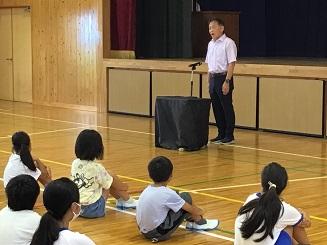 15日の学校公開日に『大書の会』が行われます。今日は、そのための講話をしていただきました。6年生児童が心を込めて字に向かってほしいと思います。