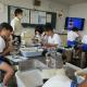 6年生の理科の実験で植物の気孔を観察しました。タブレットで顕微鏡写真を撮り、観察したものを友達と共有しています。