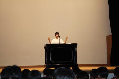 ▼2・3年生に向けて、心の内から言葉を発する則竹氏