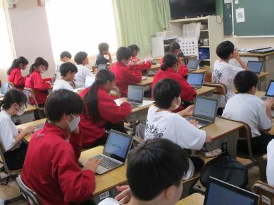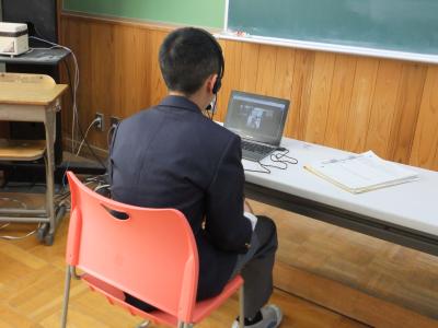 3年生の子どもたちが、英語の授業でフィリピンの学生とオンライン会話をしていました。8台のPCを使って、順番に1対1で会話を楽しんでいました。今まで習得してきた英語を駆使し、時にジャスチャーやジョークを交えて会話する生徒もいました。