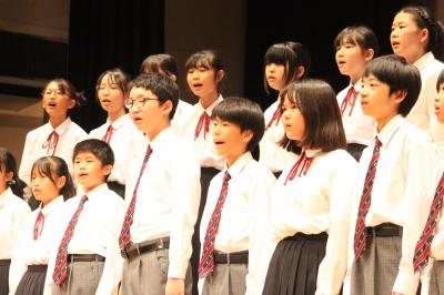 ステージに立つ子どもたちは、思いを声にのせて堂々と歌いあげました。うまくいかず悩んだり、意見がぶつかり合ったり、そして、互いの思いが通じ合ったり…。各学級でのこれまでの道のりを思い浮かべながら聴き、胸がいっぱいになりました。
