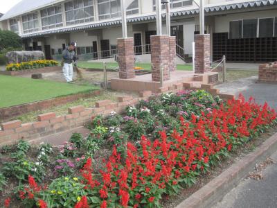 校庭では、働き者の用務員さんが草取りに励んでいました。木々や花壇の手入れ、環境整備のおかげで、季節を感じながら気持ちよく過ごすことができます。