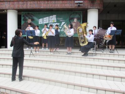 司会やファンファーレ隊、テープカット、テープカットの手伝いの仕事を、吹奏楽部の生徒ががんばりました。