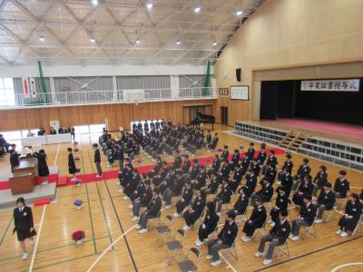 本日、無事、卒業証書授与式を行い、102名の卒業生一人一人に卒業証書を渡しました。