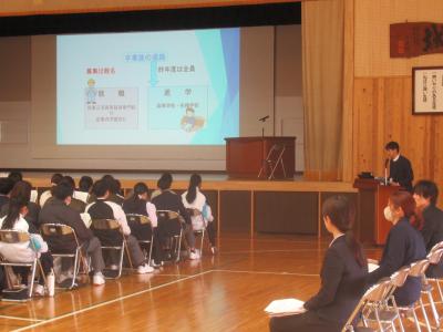今日は、入学説明会。入学を控える6年生の子どもたちと保護者のみなさんに、本校の中学校生活の様子や4月に向けて準備すること等を伝えました。