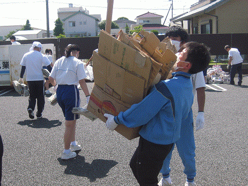 資源回収(勤労体験学習)でも多くの保護者の方や卒業生に協力していただきました。