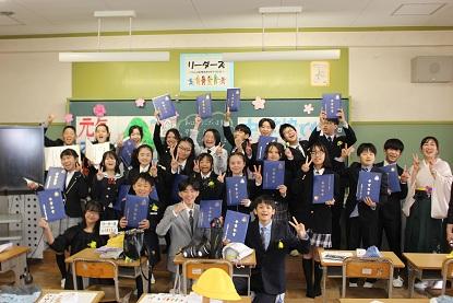 日頃、登下校や学校での読み聞かせ、地域の行事などでお世話になっている方々に、1年間の感謝を伝えました。1年生が植えたチューリップの植木鉢や感謝の気持ちをつづったお手紙をお渡しし、最後には全校で「ありがとうの花」の歌のプレゼントをしました。