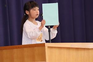 3月24日(火)、体育館で修了式が行われました。各学年の代表が修了証を受け取り、2名の代表児童が今年度がんばったことやできるようになったことを作文で発表しました。また、卒業した6年生が地域のためにと制作した、三ツ口池の広場に飾るボードもお披露目されました。