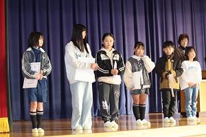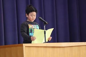 12月23日、体育館で2学期終業式が行われました。代表の児童が行事や学習など、2学期にがんばったことを立派に発表してくれました。寒い中でしたが、発表をしっかり聞いたり、校歌を元気に歌ったりすることができました。