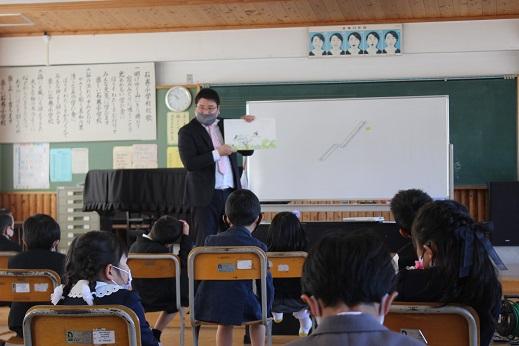 「みんな楽しそうにつりやクイズをしていて,作った側としてはすごいうれしかったです。3年生は石巻の自然をすごく好きになってくれそうでした。マイマイはぜつめつきぐしゅなので,ずっと大切にしたいです。」
