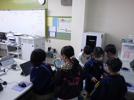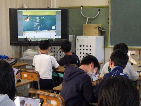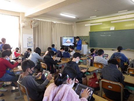 5年生は現在タブレットを使って調べたことを発表しています。写真や文字を画面に映して発表しました。写真の出し方を編集したり,文字に効果をつけるなどいろいろな工夫が見られました。