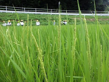 前回植えた田んぼが夏休みを通してどのように成長したか観察に行きました。とても細かった稲が大きく成長し,お米をつけるまでに成長しました。それ以外にも,真夏と秋にいる生き物の違いにも気がつきました。