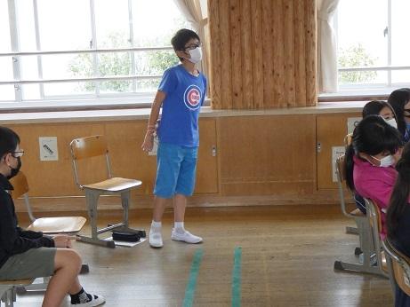 リモート児童集会で野外劇実行委員から、今年の演目「ダイダラボチ」のあらすじ説明が行われました。例年ですと、体育館で全校集まって行います。でも、みんなテレビの画面をしっかり見て、真剣に実行委員のお話を聞いていました。実行委員さん、お疲れさまでした。