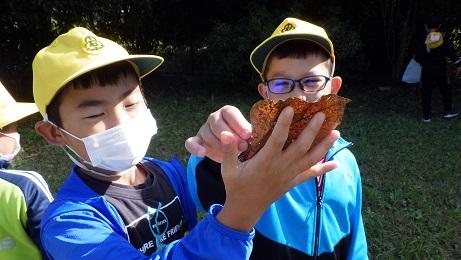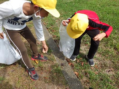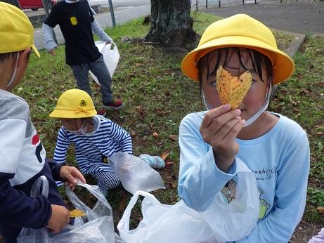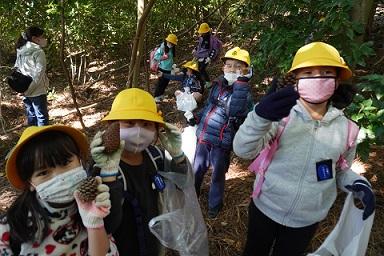 1年生は,なぎの木学習で,三本松公園へ秋見つけの探検に行きました。10月らしからず,とても暑い日でしたが,徐々に色づく葉や木になる松ぼっくりを見つけ,「お宝,発見!」と子どもたちの喜びの声が響きました。秋の色や香りにふれ,とても気持ちのよい探検になりました。