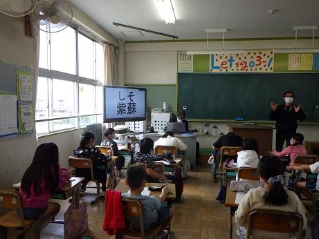 大葉農家の富永さんにお話をしていただきました。事前に豊橋で有名な農作物の調べ学習を行っていたので,大葉は他の農作物と比べてどうなのかなと興味津々な様子でお話を聞き,大葉農家さんの工夫をたくさん知ることができました。